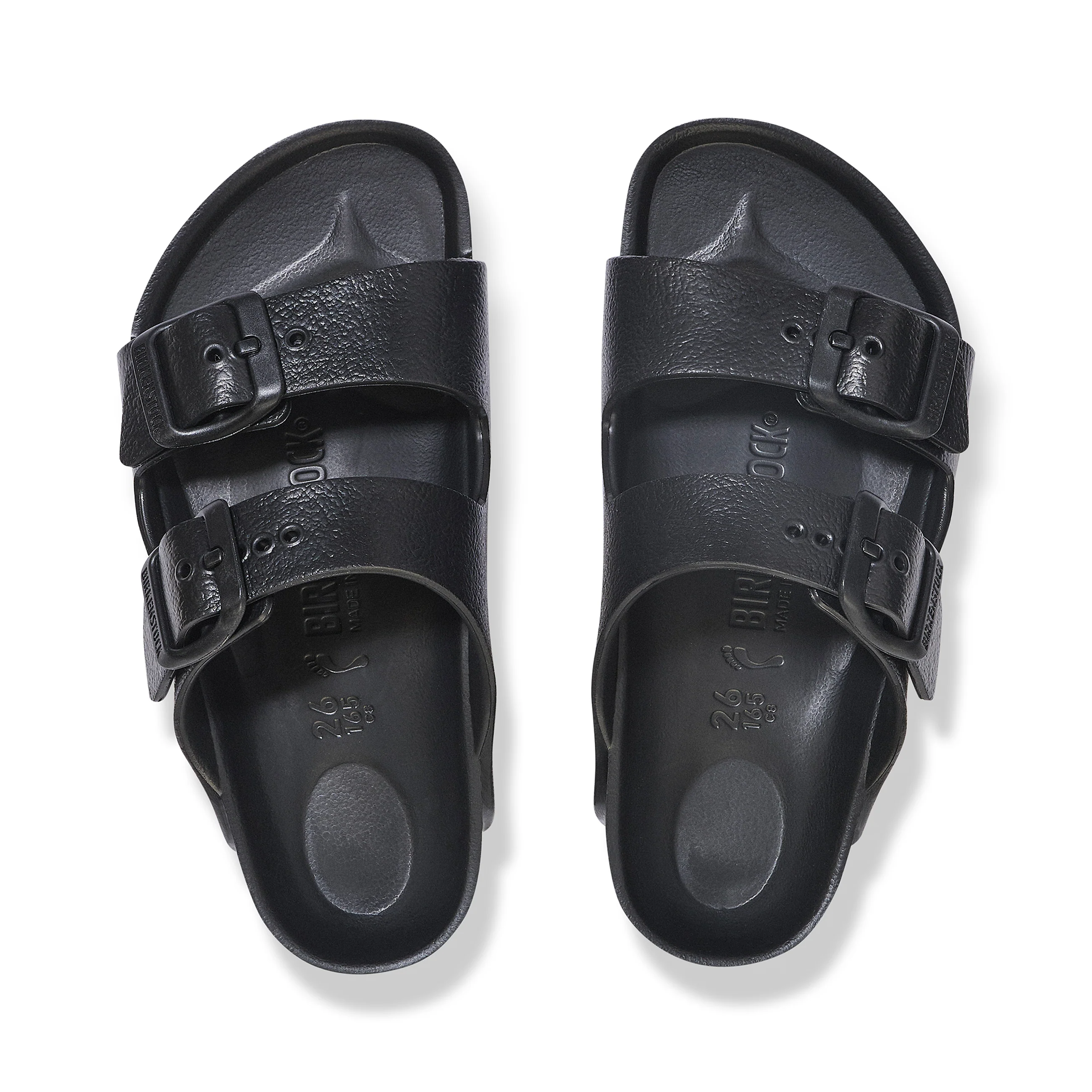 The legendary two-strap design from Birkenstock - the Arizona for kids. Modelled on the cork original, this sandal is made from ultra lightweight and highly flexible EVA. These sandals are shock absorbing, waterproof, and skin-friendly. Wear them at the beach, in the backyard, or by the pool. Sandals for all-day play!