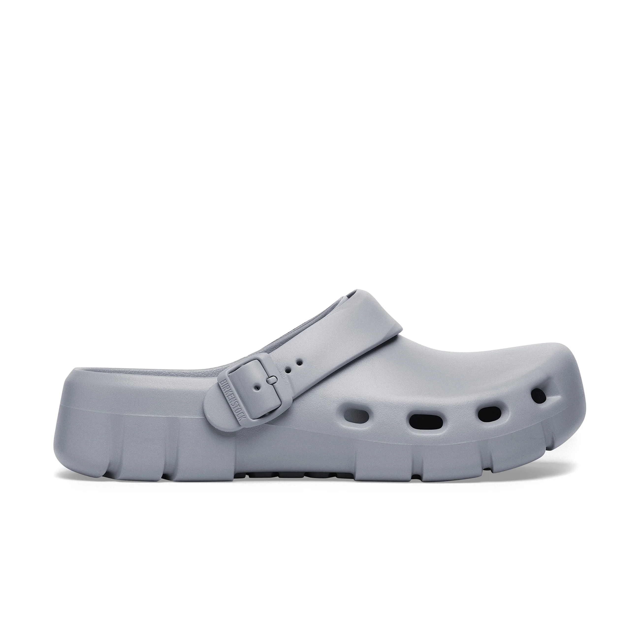 Introducing the all-new Birki Flow, our first post-sport recovery clog. Designed around the contours of our iconic footbed and bestselling Birki clogs, this new lightweight EVA (ethylene vinyl acetate) model is ultra-breathable, highly flexible, odour resistant and water-friendly. This EVA clog provides the support that Birkenstock wearers know and love along with the added comfort of air circulation from strategically placed vents that aid breathability. It is completed with classic Birkenstock design cues, from the adjustable backstrap to the moulded buckle.